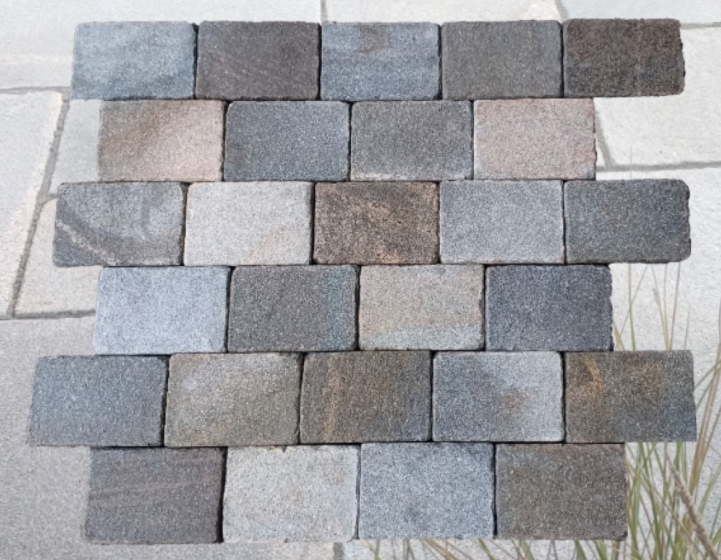Oberfläche: allseits gesägt, geflammt & wassergestrahlt, Kanten gefast